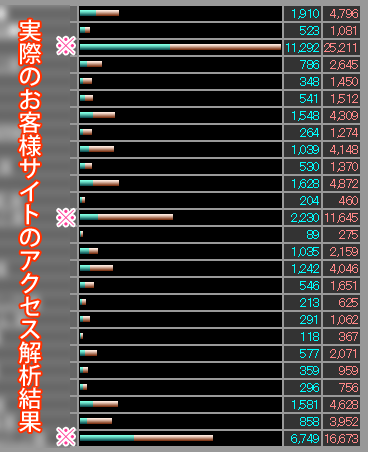 アクセス解析サービス(現在は廃止)を提供していた頃の調査データによると、情報系サイトに登録しているホームページは「訪問者数」が「桁違いに多い」という傾向がみられました。(下の画像の「※印」を参照)