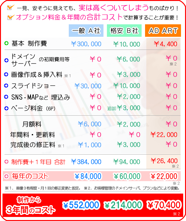※AD ARTでは「ホームページ・HP・WEBサイト・WEB・サイト」という単語を、基本的には同じものとして使用しております。当ホームページ内のすべての記述について、予めご理解ご了承ください。